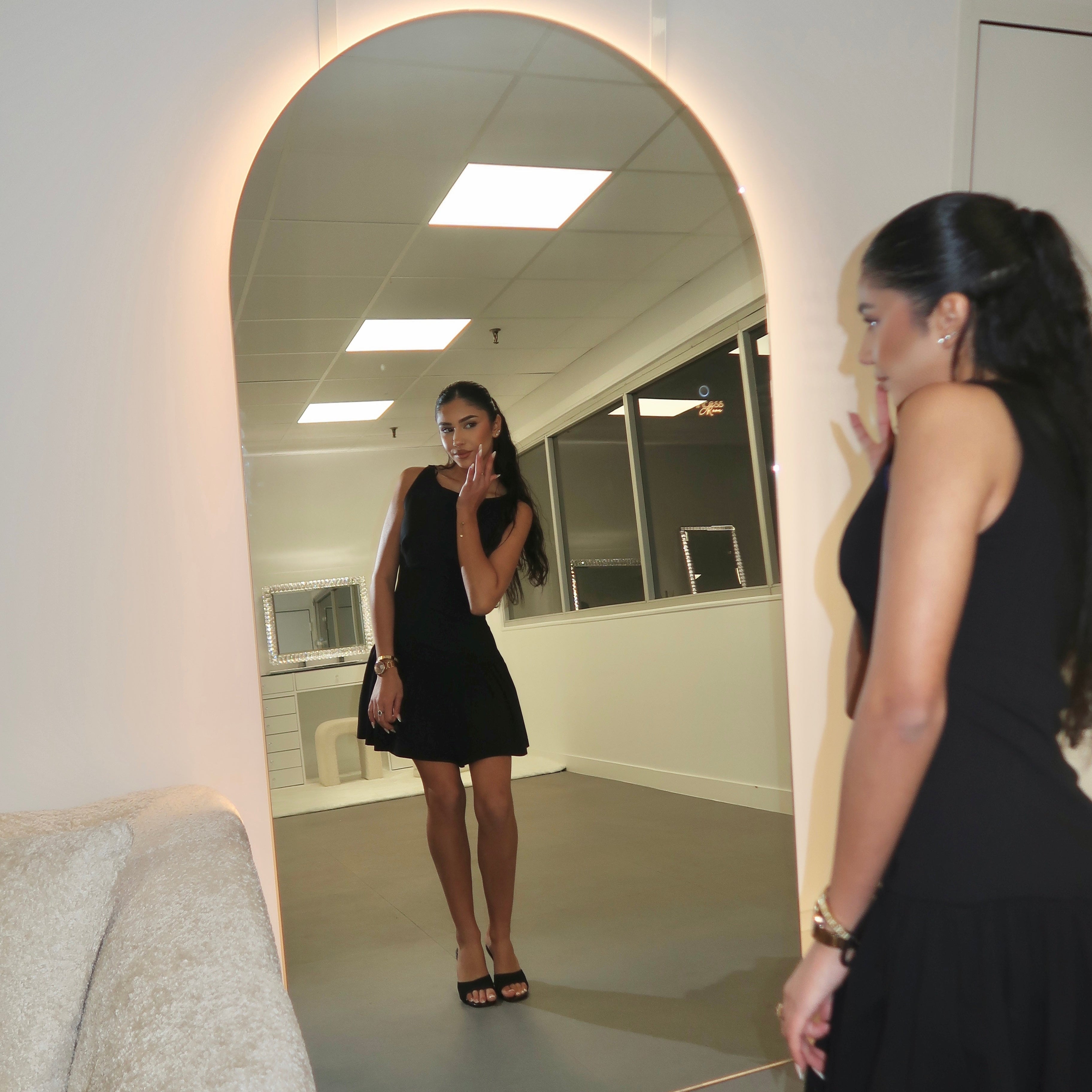 Royal est un miroir LED haut de gamme, orné de cristaux, conçu pour illuminer ta routine beauté avec élégance et une touche de magie. ✨